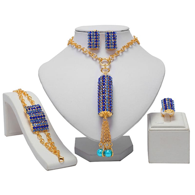 African Design Statement Jewelry 4 Piece Set Necklace Bracelet Earrings Ring