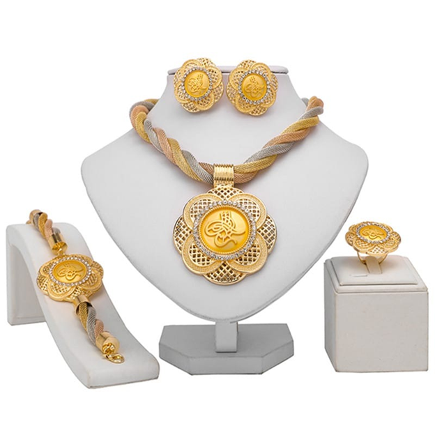 Rose Statement African Design Jewelry Necklace Bracelet Earrings Ring