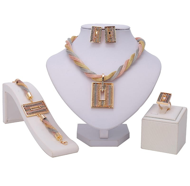 Square Pendant Statement African Design Jewelry Necklace Bracelet Ring Earrings Women