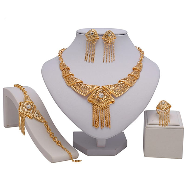 Unique Statement Women Jewelry Set Necklace Earrings Ring Bracelet